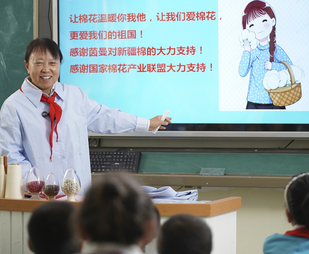 宋美珍为新疆喀什地区叶城县河园镇中心小学上公开课。中国农科院棉花所供图