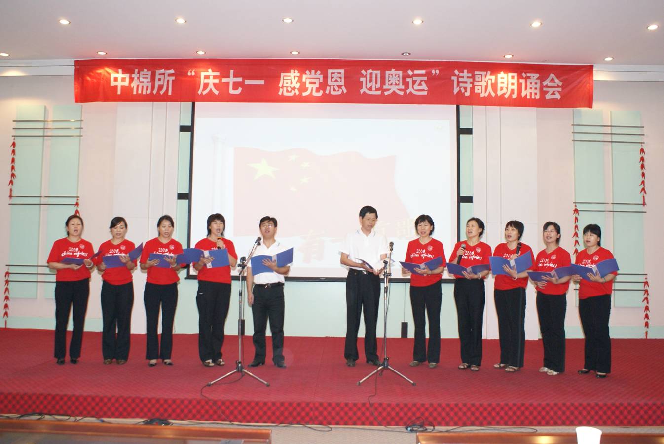 在中棉所党办、文明办的组织下,经过认真细致的准备,中棉所“庆七一、感党恩、迎奥运”诗歌朗诵比赛于七月一日下午隆重举行。