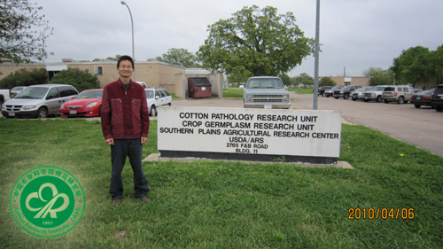 为继续加强国际交流与合作,推进棉花育种研究在国际合作方面的广度和深度,根据科技合作协议,我所陆才瑞和魏恒玲应邀于2009年6月至2010年4月赴美国农业部农业科学研究院南方平原试验中心(Southern Plains Agricultural Research Center,Agricultural Research Service,USDA)进行合作研究。该中心位于美国德克萨斯州大学城(College Station,TX)地处美国南方平原的中心,与美国知名的美国德克萨斯农工大学毗邻,是美国农部有关棉花科学最主要的研究中心,其主要研究是:1)棉花等作物生物技术;2)棉花线虫抗性研究;3)棉花、高粱等种质资源;4)棉花病虫植保研究;5)作物生物抗性研究。