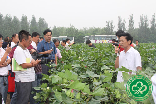 在观摩会上,与会代表实地考察了双价转基因抗虫棉新品种中棉所60的田间表现情况,听取了中棉所60在河南、河北、陕西、山西、山东和天津的种植表现的有关汇报。参加此次现场观摩的主要领导有科技部农村司蒋茂森处长、农业部全国农技推广中心梁桂梅处长、河北省科技厅李从民副厅长及高振峰处长等;此外,邯郸市科技局主要领导、永年县委县政府领导全程参加和筹备了此次新品种观摩和展示活动;李付广副所长出席本次大会并作讲话。本次现场会还得到了人民日报、科技日报、农民日报、中央一台、七台及河北省、市、县各大主流媒体的关注和采访。