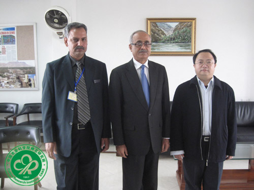 与费萨拉巴德农业大学Iqrar Ahmad Khan副校长(左二)和外事部主任Asif Ali Khan博士(左一)在一起