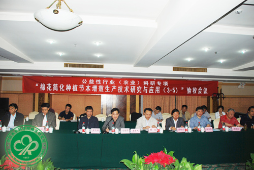 公益行业(农业)科研专项“棉花简化种植节本增效生产技术研究与应用(3-5)”通过验收。专项业务和财务验收会议于2011年5月8日在河南省郑州市召开。农业部科技教育司产业技术处张振华副处长主持了会议,农业部科技中心郑戈副处长出席了会议。参加会议有专项第一承担单位我所喻树迅所长、科技处赵新华处长、栽培室毛树春主任和财务处李丽霞副处长、以及河南省农业科学院副院长房卫平、河南科技学院院长王清连等协作单位。