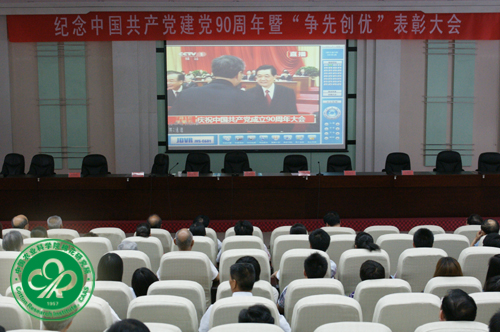 最后,全体党员集中观看了中共中央在人民大会堂召开的庆祝中国共产党成立90周年大会盛况,聆听了胡锦涛总书记的重要讲话。(摄影 张聚明)