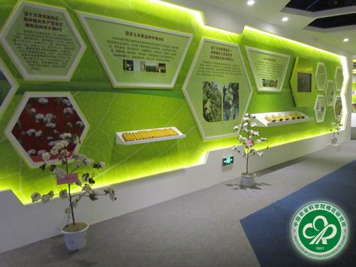 展出成果(左一 农大棉9号 左二 中棉所83 左三 中棉所73)
