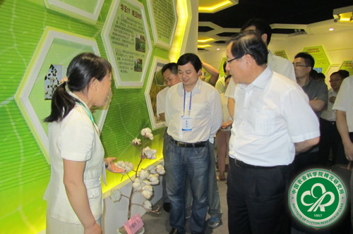 2013年6月25日,我所主持的863计划项目“强优势棉花杂交种的创制与应用”课题的星空体育·(中国)官方网站在天津滨海新区国家863计划成果展示交易平台成功展出。参展的成果有我所培育的早熟杂交棉品种中棉所73、三系杂交棉品种中棉所83和河北农业大学培育的丰产杂交棉品种农大棉9号等,这三个品种均适于天津滨海地区种植。宋美珍研究员向科技部部长万钢、天津市科委等领导介绍了以上品种的详细情况,并获得好评。
