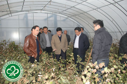 杨江勇副师长一行先后参观了棉花生物学国家重点实验室、成果展览室、转基因实验室,考察了我所最新研制的转基因抗旱育种新材料,对我所的科技创新能力和为我国棉花产业发展做出的贡献给予了高度评价和充分肯定。