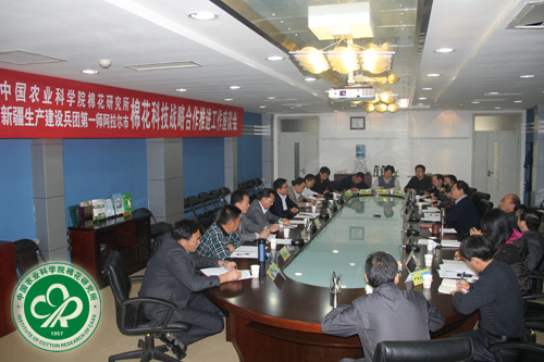 杨江勇副师长一行与我所领导班子、相关部门负责人及部分育种、栽培专家进行了座谈交流。座谈会上,双方在8月30日座谈达成合作共识的基础上,进一步就棉花科技战略合作、种质资源交流、成果转化与产业化、人才培养及我所在兵团第一师从事有关科研工作所需土地等重要事项进行了细化磋商,达成了合作意向,为加快我所向新疆发展战略转移和加强中棉所与兵团全方位合作打下了坚实的基础。(摄影:彭振)