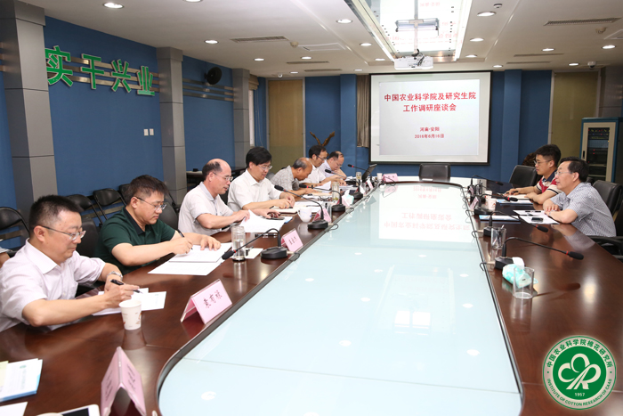 在所期间,刘大群重点考察了棉花生物学国家重点实验室、科技成果展览室以及研究生自习室、宿舍和活动场所等。座谈会上,刘大群听取了副所长王坤波关于我所近年来研究生管理情况的汇报,并与导师和研究生代表以及科技管理处相关人员进行了交流。刘大群对我所立足安阳,广泛加强与全国高校联合招收研究生的办学模式给予了肯定,并对我所在我院率先筹建研究生公寓表示赞赏。此外,他就我所学业奖学金设置,研究生生源、指标、待遇,棉花科学学院归属管理以及留学生管理等问题进行了答疑和指导。