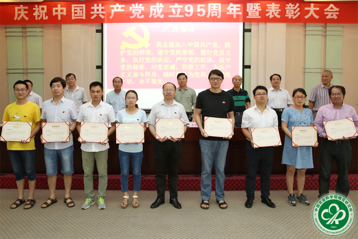 6月29日上午,我所召开庆祝中国共产党成立95周年暨表彰大会。大会表彰了2016年度先进基层党组织和优秀共产党员,举行了新党员入党宣誓;党委书记李付广以“加强自身建设 争做合格党员”为题做了“两学一做”学习教育专题党课报告。其间,参加了院庆祝中国共产党成立95周年视频大会。党委副书记宋国立主持会议。