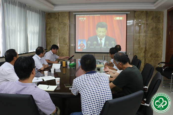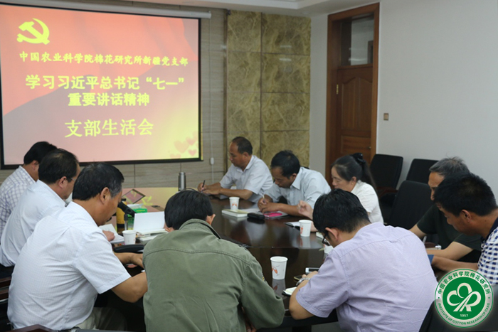 会上,支部党员重温了入党誓词,通过视频学习了习近平总书记“七一”重要讲话精神,并围绕习近平总书记讲话进行了深入讨论。会议认为,习近平总书记站在人类历史的高度回顾了建党95周年来的光辉发展历程,对中国共产党有信心和能力带领全国各族人民实现中华民族伟大复兴中国梦的前景进行展望,备受鼓舞,倍增信心。支部党员表示,将全面贯彻习近平总书记“七一”重要讲话精神,深入领会“不忘初心、继续前进”的根本要求,以更加坚定的理想信念、更加强烈的创新意识、更加高效务实的举措和更加自信有为的精神状态,积极投身棉花科技事业,为实现中华民族伟大复兴的中国梦作出新的贡献。