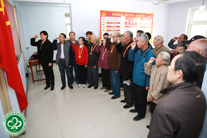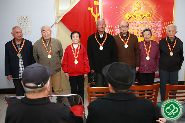 活动伊始,支部全体党员重温了入党誓词。党委副书记、纪委书记宋国立为大家上党课,共同学习习近平总书记系列讲话精神。并按照安阳市委组织部的通知要求,对党龄50年以上的蒋国柱等8名党员颁发了“中原先锋”纪念章。