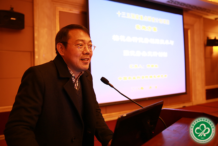会上,中国农村技术开发中心项目专员魏珣博士就项目设计背景、申报、评审和立项批复等环节进行了详细介绍,深入解读了中央财政科研项目资金管理的最新政策变化,并对项目及课题实施管理方面提出了具体要求。项目主持人邢朝柱研究员就项目的实施方案及任务分工等情况进行了汇报。南京农业大学张天真教授、华中农业大学郭小平教授、我所郭立平副研究员和杨代刚研究员分别围绕棉花杂种优势类群创建、新材料创制、新技术研制及强优势杂交种选育四大任务方向进行了分析报告。与会领导、专家对项目及课题的组织实施方式、技术路线等提出了具体优化意见和建议。