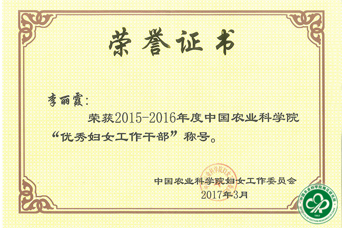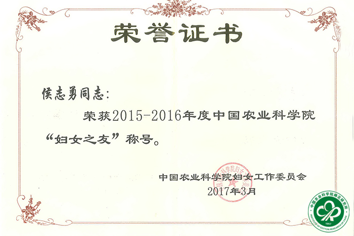 近日,从中国农科院举办的纪念“三八”国际劳动妇女节表彰大会上传来喜讯,我所党委副书记侯志勇荣获中国农业科学院“妇女之友”称号,李丽霞荣获 “优秀妇女工作干部”称号。