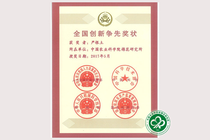 严根土是我所遗传育种室研究员。自1992年从事棉花育种工作以来,他兢兢业业、刻苦认真,大胆探索、创新实践,为我所棉花研究做出了突出的贡献。20多年来,他研究了8000多份国内外育种材料,系统分析了从田间地头得来的上千万组数据,终于发明了“一种提高棉花产量和品质的育种方法”,并带领团队成员成功培育出中棉所44、中棉所49等一系列有突破性的棉花新品种10个。品种适宜种植区域涵盖我国黄河流域、长江流域和西北内陆三大棉区,累计推广面积超过8000万亩,产生经济社会效益达150亿元。其培育的中棉所49,具有多抗、稳产特性,连续10年被农业部推荐为主导品种,推动了我国主产棉区品种的更新换代,为新疆棉花生产乃至全国棉花产业的稳定发展作出了突出的贡献,该项成果荣获2016年度国家科学技术进步二等奖。
