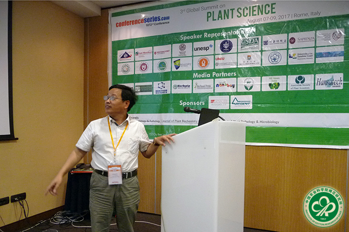 叶武威和袁有禄研究员分别作了题为“Germplasm identification and salinity-tolerant gene isolation on G. hirsutum L.”和“Construct a high-density genetic map and its application to genetic regulation analysis for yield and fiber quality traits”的大会报告,分别介绍了棉花耐盐鉴定与耐盐新基因挖掘研究、棉花产量纤维品质的QTL挖掘等最新研究进展,并在大会交流中产生了广泛的影响。