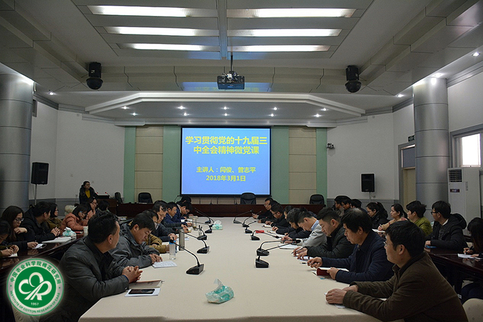2018年3月1日,科研第二党支部在产业楼多功能厅召开党员大会,学习贯彻党的十九届三中全会精神。党委委员袁有禄以普通党员身份参加会议,会议由支部书记崔金杰主持。