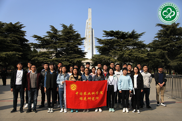 为缅怀革命先烈的丰功伟绩,大力弘扬革命传统精神,推进社会主义核心价值观宣传教育,清明节前夕,2018年3月30日下午,我所组织30余名棉花实验班学生到安阳市烈士陵园开展祭扫活动。