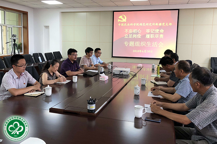 2018年6月30日上午,新疆党支部在新疆昌吉中国农科院西部农业研究中心三楼会议室组织召开了“不忘初心、牢记使命、立足岗位、履职尽责”组织生活会。支部书记黄群主持会议。