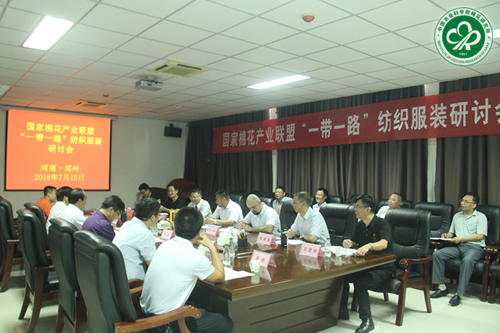 2018年7月15日下午,国家棉花产业联盟“一带一路”纺织服装研讨会在中棉种业科技股份有限公司召开。副所长、联盟副理事长兼秘书长、中棉种业董事长张西岭,河南省纺织企业家协会会长、河南永安纺织公司董事长、联盟常务副理事长张全法,东华大学“一带一路”国际合作发展研究中心首席研究员王华,中国恒天集团高级工程师、大客户经理张旭华,上海永澳纺织科技有限公司董事长王进华,乌兹别克斯坦塔什干纺织轻工大学纺织学院院长AVAZOV KOMIL,东华大学博士后、原塔什干纺织轻工大学国际合作处处长MADJIDOV SHAKHRUKH,我所及中棉种业相关人员参加会议。会议由张西岭主持。