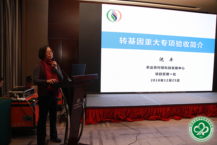 2018年12月25日,我所组织召开了转基因重大专项棉花项目2018年度总结会。农业农村部科技发展中心沈平研究员,我所所长李付广、党委书记吕春生、党委副书记宋国立以及各课题牵头和参加单位主要负责人100余人参加会议。会议开幕式由宋国立主持。
