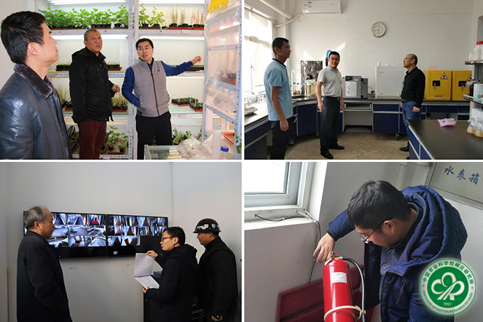 为确保春节期间研究所安全生产形势稳定,营造平安、欢乐、祥和的节日环境,2019年1月29日-30日,所长李付广、党委书记潘燕荣带领由相关单位负责人组成的检查组对办公区、生活区和试验基地开展了全面的春节前安全生产大检查,并慰问了在一线工作的职工。所属郑州、海南、新疆、长江4个科研中心同步开展安全检查。