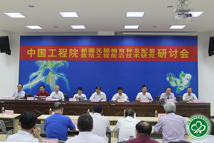 2019年3月1~2日,中国工程院学术活动新疆无膜棉育种及配套栽培工程前沿技术研究研讨会在我所海南科研中心召开。中国工程院二局副局长左家和、项目主管王浩闻、中国工程院农学部主任康绍忠院士、中国农业科学院喻树迅院士、王汉中院士、中国科学院地理科学与资源研究所孙九林院士、中国林业科学研究院张守攻院士、湖南农业大学邹学校院士、国家农业信息化工程技术研究中心赵春江院士等相关专家50余人出席会议。中棉所党委副书记宋国立主持会议。