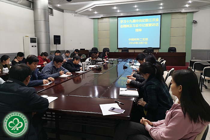 会上,党委书记潘燕荣传达了十九届中央纪委三次全会精神和农业农村部全面从严治党工作会议精神,带领支部党员学习了习近平总书记的重要讲话精神。