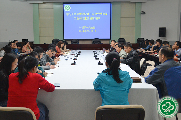 2019年3月19日下午,科研第一党支部在产业楼多功能厅召开党员大会,学习贯彻十九届中央纪委三次全会精神及习近平总书记重要讲话精神。会议由支部副书记叶武威主持。