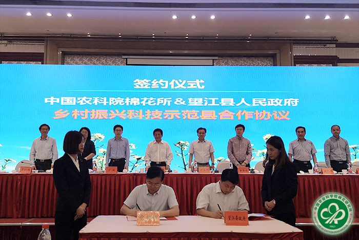 此外,中国农科院油料作物研究所与望江县人民政府签订科技合作协议,并在中棉所长江科研中心挂牌 “中国农业科学院油料作物研究所望江综合试验基地”。