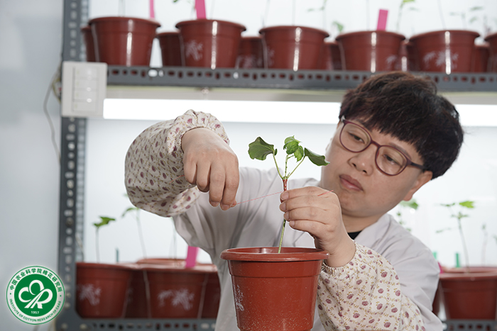 王玉芬,工人技师,主要负责转基因棉花幼苗嫁接工作。她说:“我是在所里长大的,对田伯英老师的事情了解的比较多,田伯英原来在育种室工作,做一些很枯燥很繁琐的工作,但是她对待每一件工作都认真负责。我们要学习田伯英等老一辈科学家严谨负责的工作态度,认真做好每项工作,推动工作不断取得新成绩,为解决棉花生产问题作出更多的贡献。”