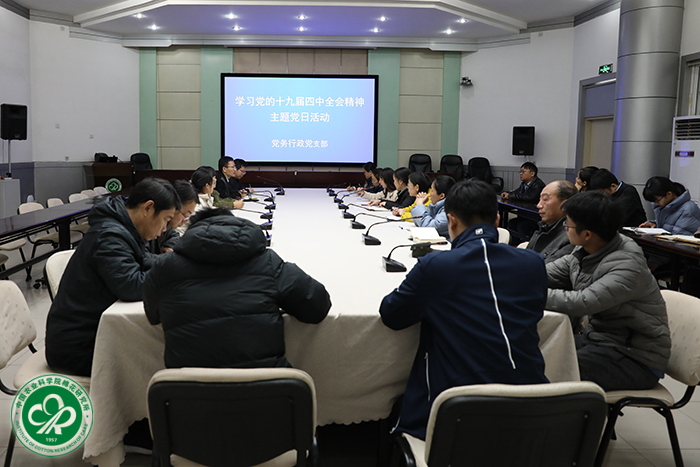 2019年11月20日,党务行政党支部开展主题党日活动,传达学习党的十九届四中全会精神。会议由支部书记冯文娟主持。