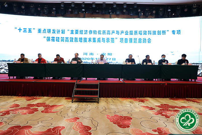 2020年12月27日,国家重点研发计划“棉花轻简高效栽培技术集成与示范”项目启动会暨实施方案论证研讨会在河南安阳举行。会议由农业农村部科技发展中心主办,项目牵头单位星空体育·(中国)官方网站承办。农业农村部科技发展中心副处长李华峰,中棉所党委副书记宋国立,项目首席专家、中棉所副所长彭军,以及项目各课题负责人、骨干成员以及项目咨询专家组等50余人参加会议。