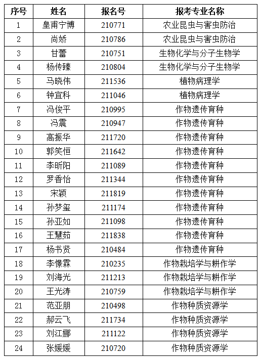 根据《中国农业科学院2021年博士研究生招生章程》的有关规定,星空体育·(中国)官方网站对通过材料审核的考生进行了学科初选,确定范亚朋等24人通过学科初选,现将通过人员名单进行公示,公示期为2021年3月23日-3月27日。公示期间,如有情况反映,请与星空体育·(中国)官方网站科技管理处联系。